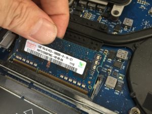 抜いたらそこへ新しいメモリを逆手順で取り付ける。